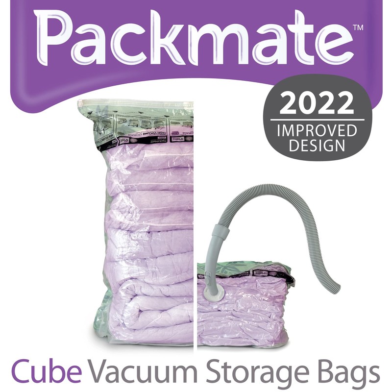 - WHY A “HIGH VOLUME” VACUUM BAG?: Reducing clutter and home storage has never been easier. Save up to 75% more space by organising your big and bulky everyday items with Packmate cube storage bags. They have a square base and are ideal for bedding sets, bulky clothes and towels. These space-saving bags protect contents from dirt, dust, dampness, bugs and so much more