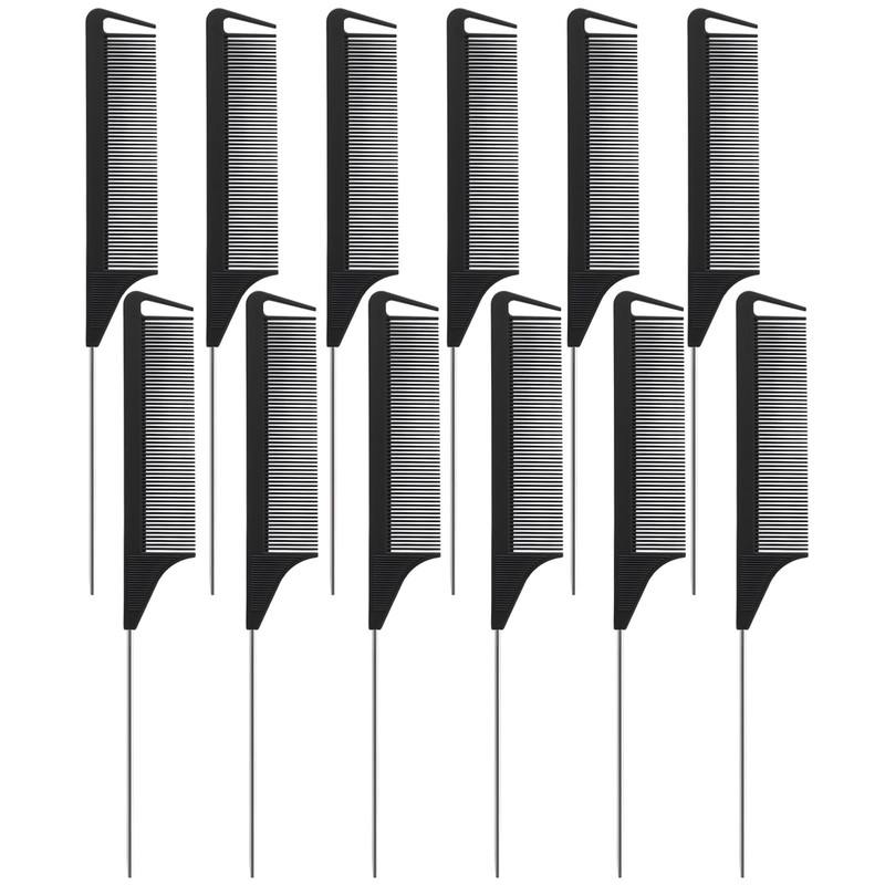 Packool 12 pieces Rat tail comb, tip comb for braids, fine-toothed comb with metal pin tail, heat-resistant toupier comb for braiding, hair dye, partitions, 22.5 x 2.9 cm (8.9 x 1.1 inch)