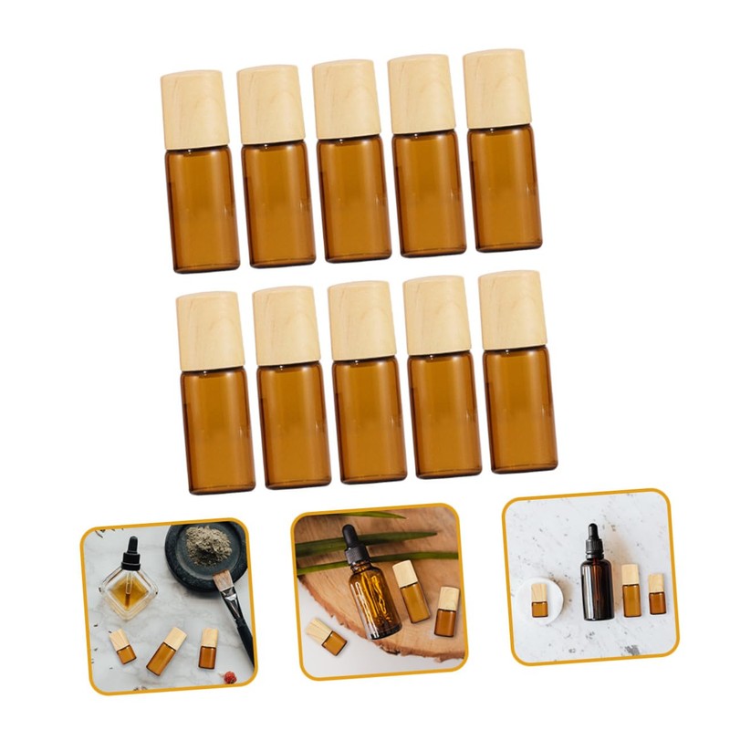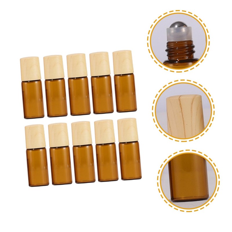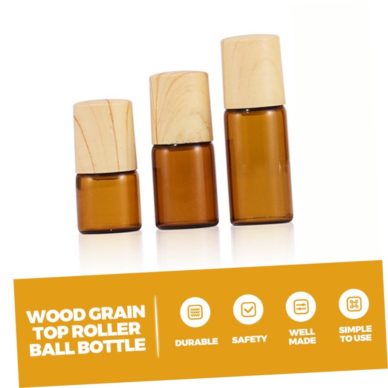 PACKOVE 10pcs Essential Oil Roller Bottles with Wood Grain Caps Refillable Glass Perfume Vials Aromatherapy Containers for Travel and Makeup Storage
