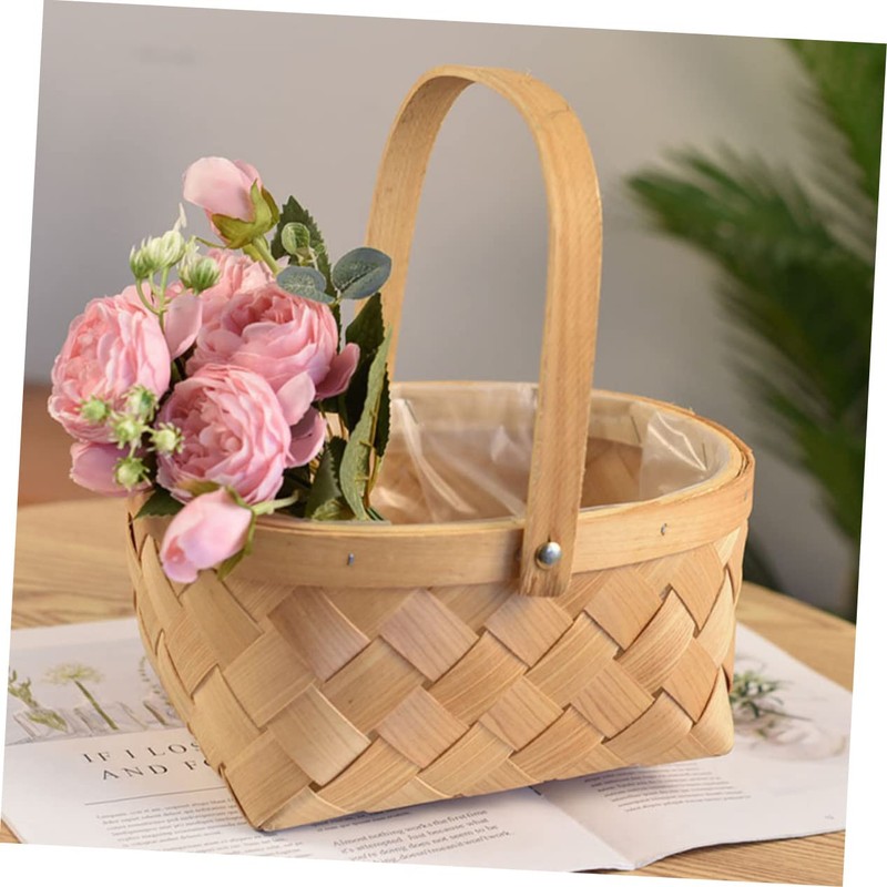 PACKOVE 1Pc Creative Rattan Woven Storage Basket Flower and Sundries Organizer for Home Decor Multi Purpose for Fruits and Snacks with Flexible Handles