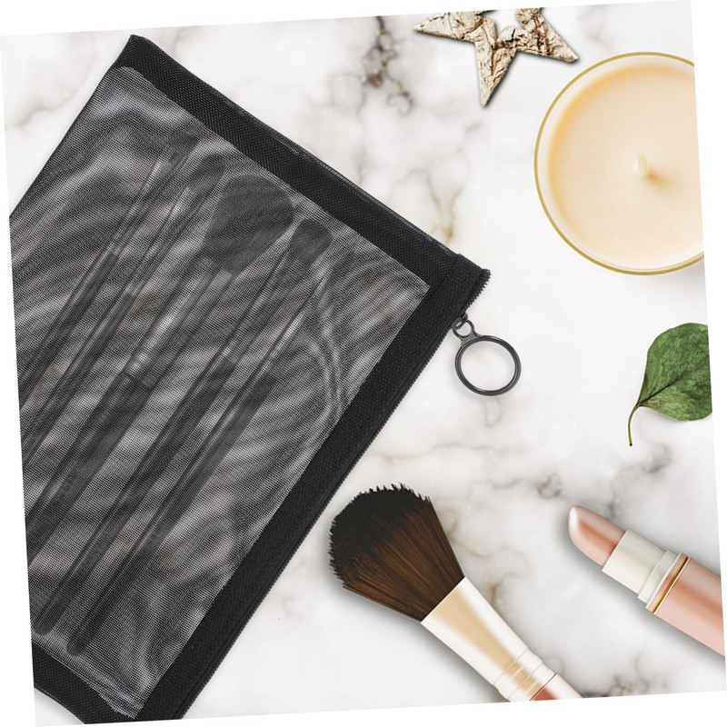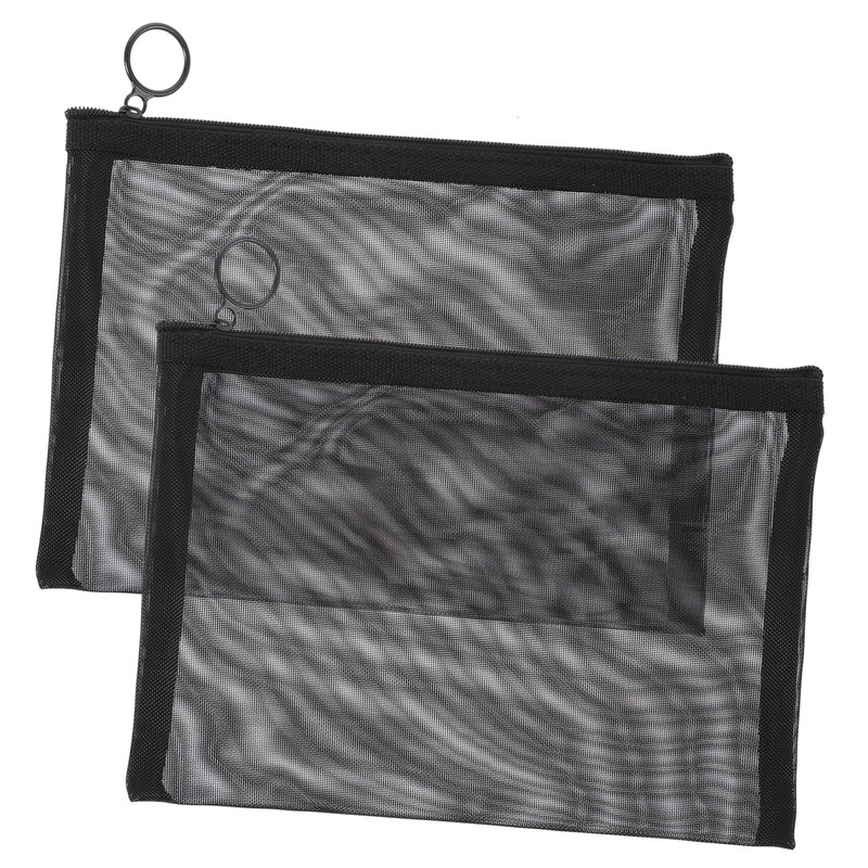 PACKOVE 2 Pcs Portable Mesh Makeup Bags Lightweight Travel Toiletry Pouch with Zipper Closure for Cosmetics Toiletries and Accessories in Black