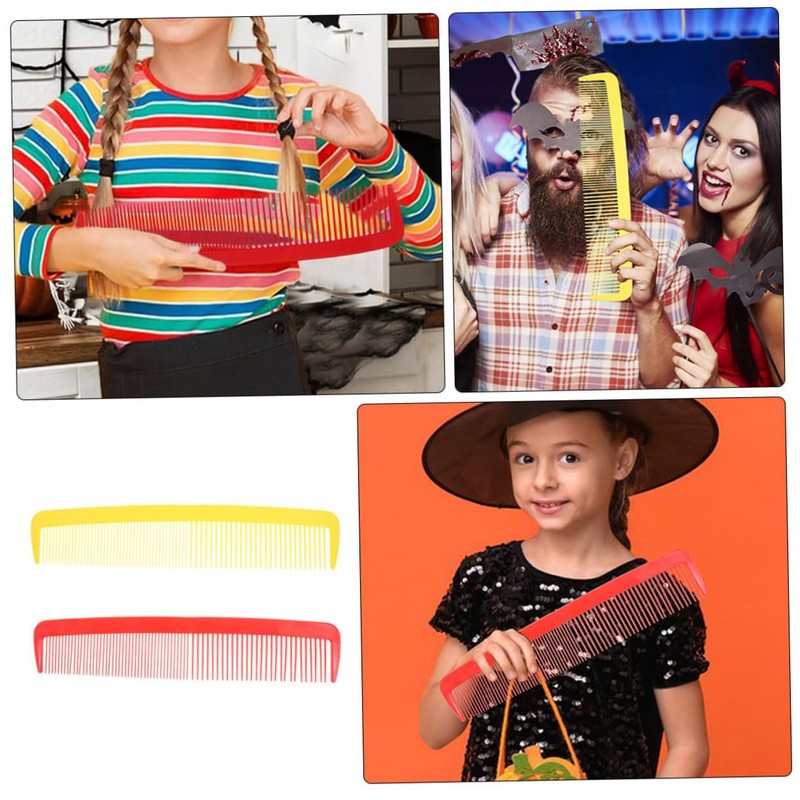 PACKOVE 2pcs Giant Big Comb Prop Jumbo Clown Comb for Halloween Carnival Party Wide Tooth Plastic Hair Brush Prank Costume Accessory in Red and Yellow Funny Oversized Detangling Tool for