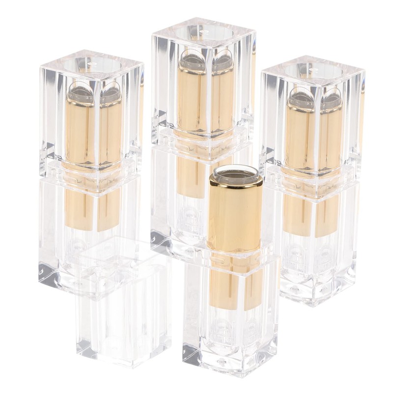 PACKOVE 4 Pcs DIY Lipstick Tubes Refillable Lip Balm Containers for Crafting Square Empty Storage for Lip Gloss and Cream