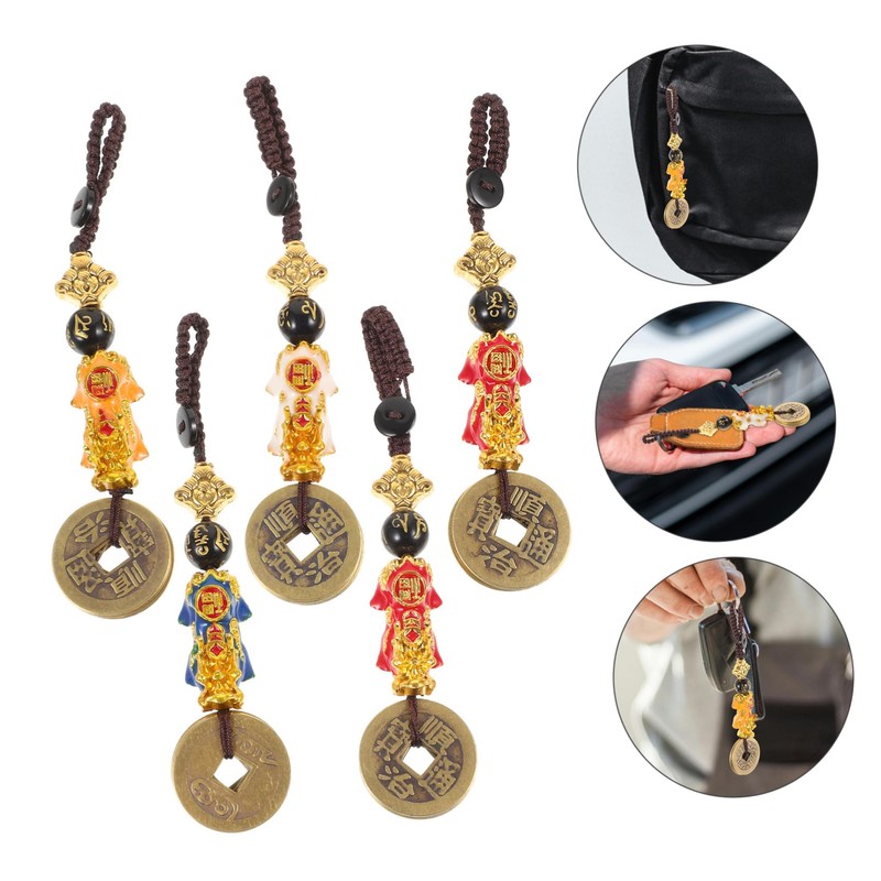 PACKOVE 5pcs Antique Chinese Keychains Material Copper Design Decorative Key for Car Keys Bag Pendants and and Elegant
