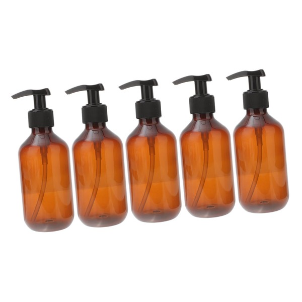 PACKOVE 5Pcs Empty Bottles with Pump Press for Shampoo and Emulsion Refillable Brown Plastic for Travel and Home Use