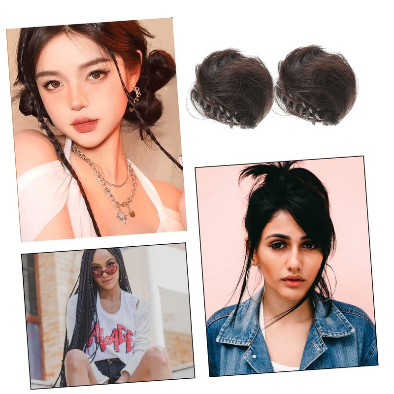 PACKOVE 6pcs Cat Ear Bun Hairpiece Clip Easy Use Chignon Extensions for Daily Wear Weddings and Parties Realistic Soft Texture for Fashionable Look