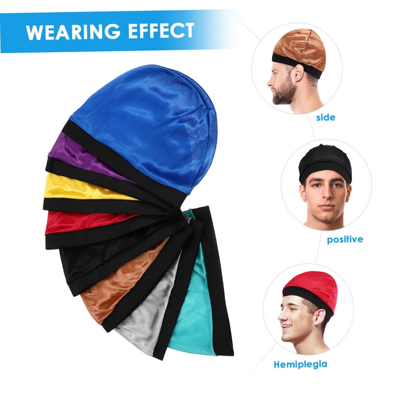 PACKOVE 8Pcs Multi Functional Wave Cap for Men Lightweight Silky Elastic Hair Cover Includes Wine Lake