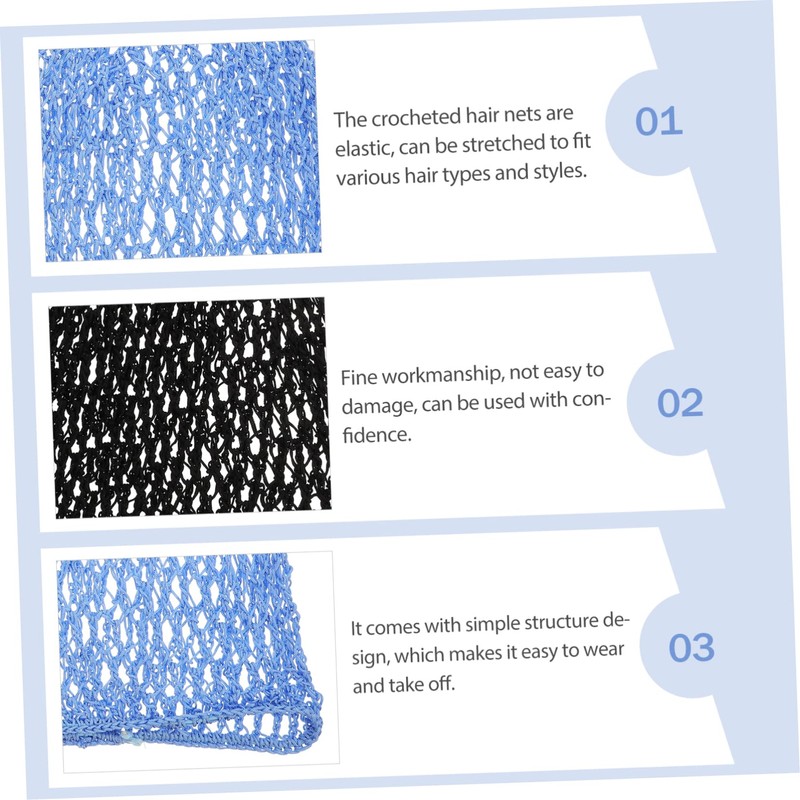 - The crocheted hair nets are elastic, can be stretched to fit various hair types and styles, very practical to use Girl Hair Care Net.