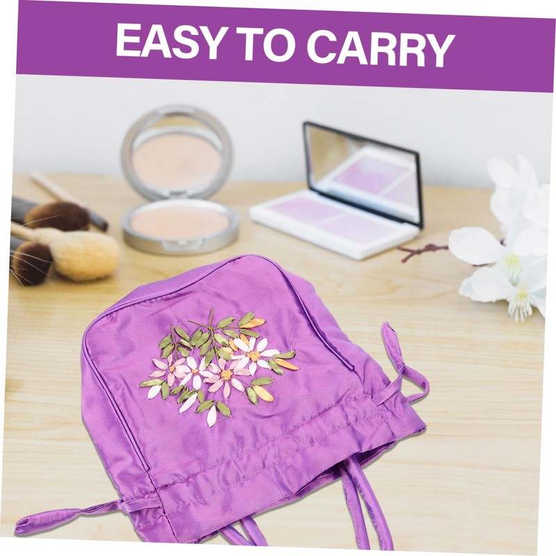 PACKOVE Handbag Ladies Drawstring Purse Ethnic Style Embroidered Tote Bag Violet Handbag