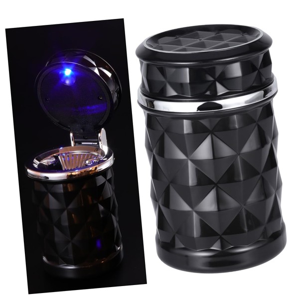 car cigarette ashtray This car ashtray looks classy and luxurious, eye-catching for everyone who is a fan of the .car ashtray cup holder and the cover can closes securely thereby keeping the smell from spreading or lingering.car ashtray Blue light will be lighten when you open and lift the lid.car ashtray smokeless It's easy to Install with 2 wind buckles, and enable you to lit cigarette in your car conveniently