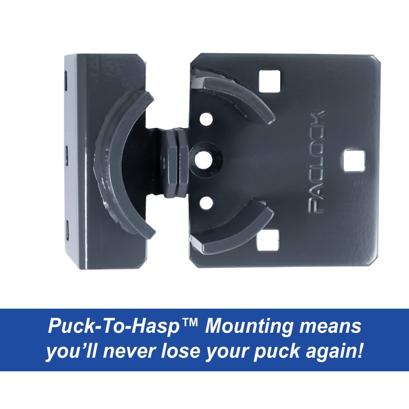 PACLOCK's UCS-7A/779 Hasp and Puck Combo Kit, Buy American Act Compliant, High Security 6-Pin Cylinder, One Lock Keyed to a Number U-Pick! w/ 2 Keys, Black Anod. Puck, Double Coated Grey Hasp
