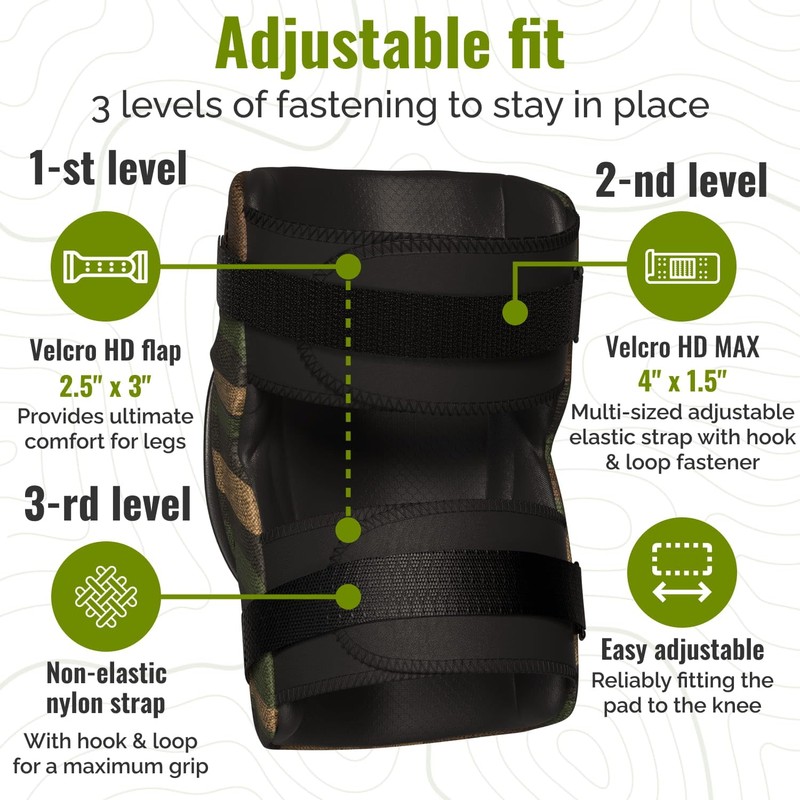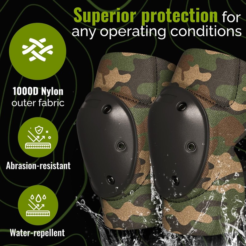 - 【MADE FOR THE U.S. ARMY】 Battle-tested and designed for the U.S. Army, the PRO Army Style Knee Pads offer unparalleled protection, effectively minimizing the risk of knee-related injuries. Available for leg sizes - Small (14 - 19 inches) in woodland camo color. Made in the USA