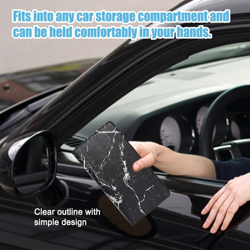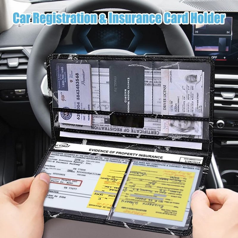 - [Practical design] : The inside of the car registration holder are transparent layers, good stability, storage cards/documents will not easily fall out. A transparent compartment is designed to allow you to show your internal documents in an emergency. When opened, you and others can easily see the necessities without having to remove them again. This conveniently designed car necessities is ideal for storing your important documents for added safety.