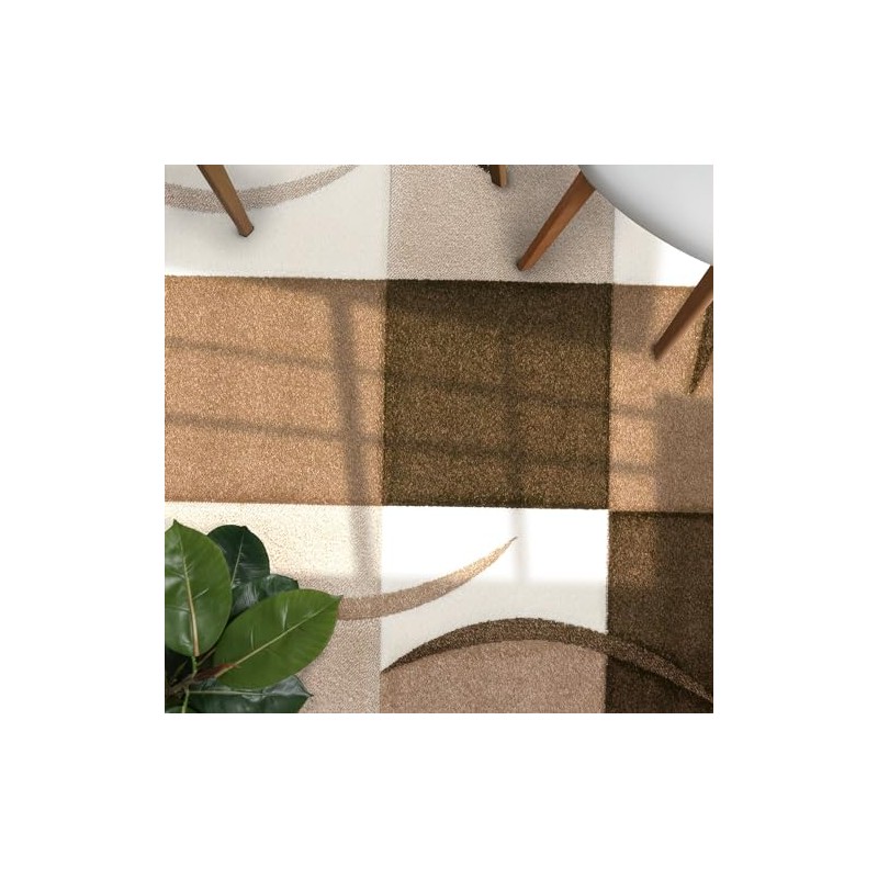 Paco Home Area Rug Checkered with Modern Carved Shades in Beige Brown, Size: 3'11" x 5'7"