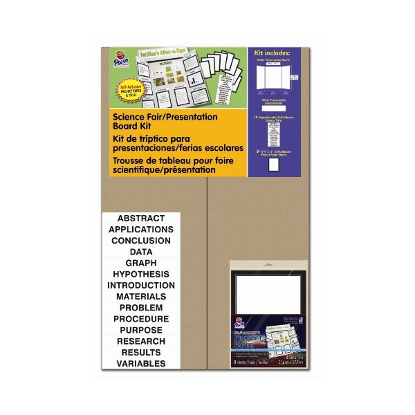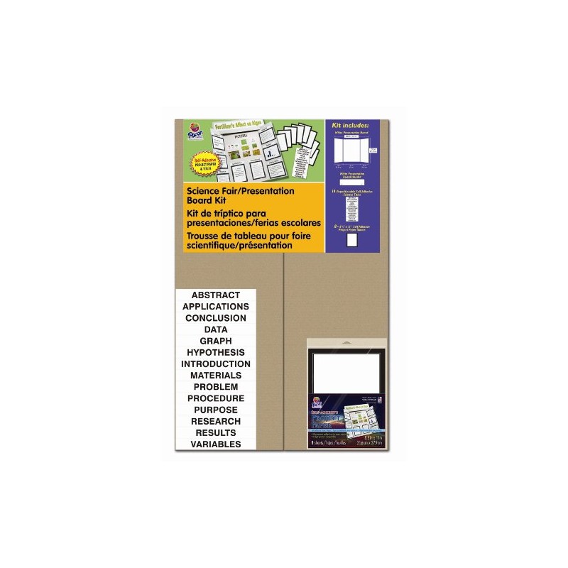 - Kit includes 1 white corrugate 48" x 36" presentation board, one header, eight self-adhesive project papers and 14 self-adhesive science titles