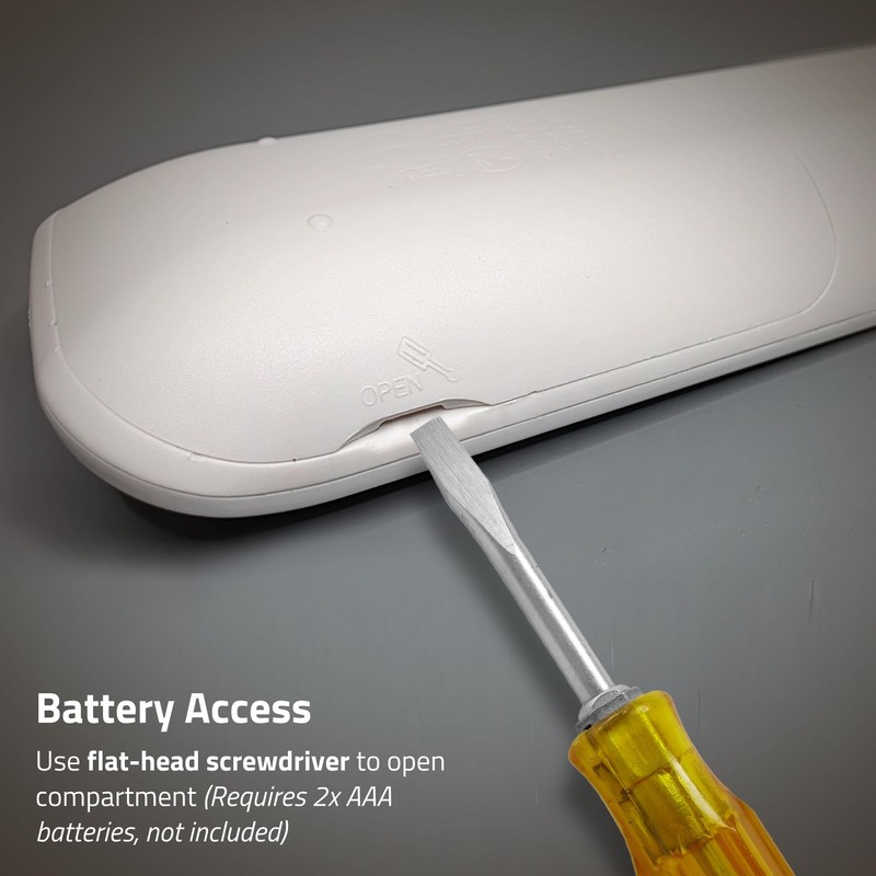 Requires 2 AAA batteries (not included) with low 15μA standby consumption. A low battery indicator blinks rapidly when replacement is needed (use flat-head screwdriver for access to battery compartment). Stable operation range is from -20°C to 60°C; avoid high-humidity areas per manufacturer guidelines as this RF-only unit lacks waterproofing.