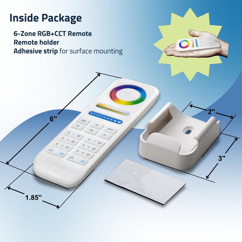 Pactrade Marine RGB+CCT LED Remote Control for Mi-Light 2.4G Systems - 6-Zone RF Wireless Remote with 16M Colors, Temperature, Dimmer Control, 98 FT Range - No WiFi Needed, Marine-RV Ready (FUT089S)