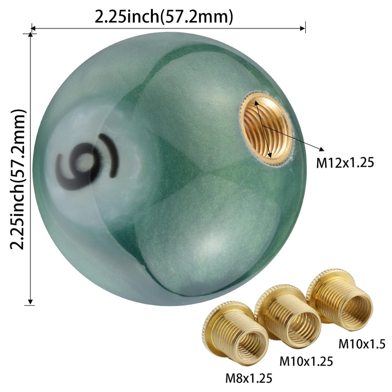 - Product Size: The shifter knob thread size is M12x1.25, package with 3 threading Metal adapters: M8x1.25 M10 x1.5 M10x1.25.