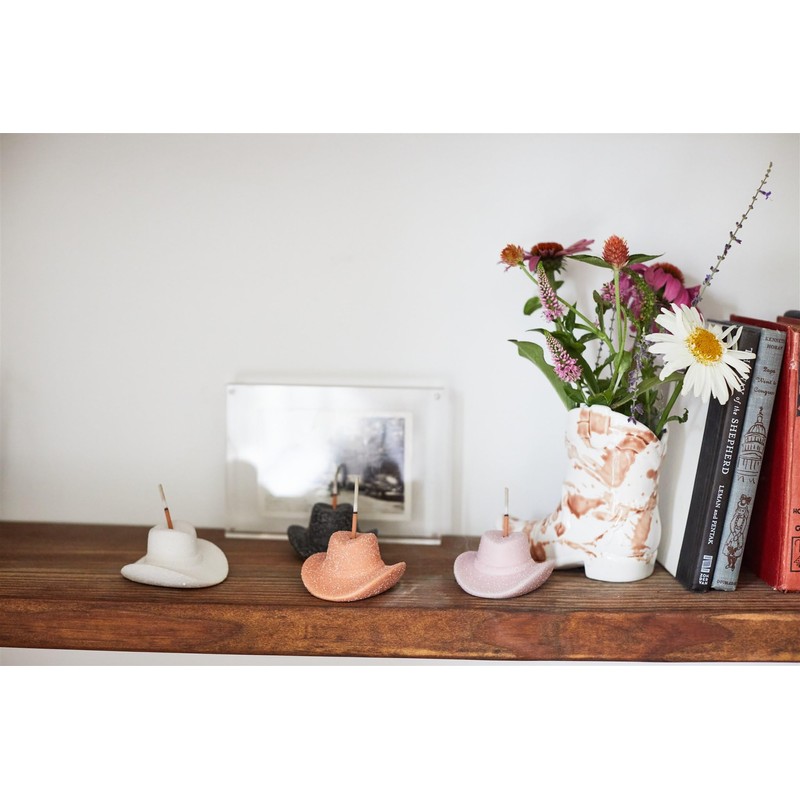 - VINTAGE-INSPIRED INCENSE BURNERS Crafted out of textured pink ceramic and shaped like a cowgirl hat