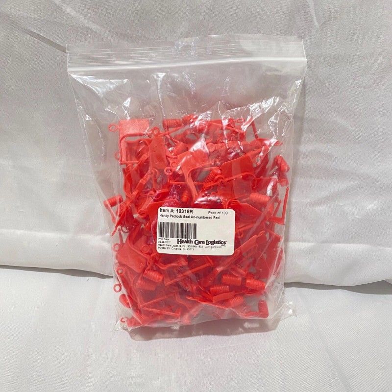 Padlock Seal Tags Health Care Logistics Un-Numbered Red Plastic 100 Count Bag