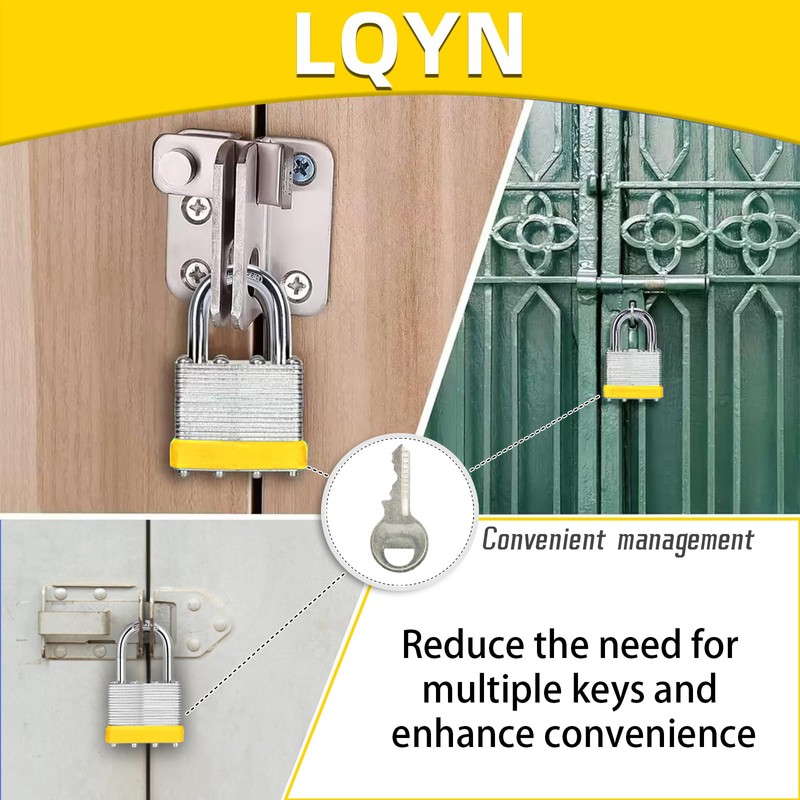 Padlocks with Same Key, LQYN 60 Pcs Laminated Keyed Padlock (1-9/16", 40mm), Keyed Alike Locks, Normal Shackle, for Storage Locker, Hasp Latch, Toolbox, Sheds
