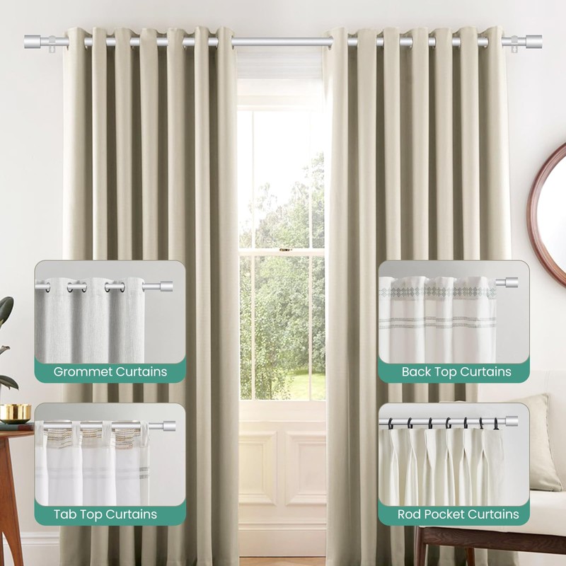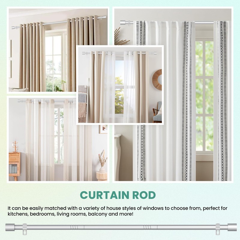 - 🏠Our modern curtain rod can match all types of curtains and drapes-sheer, rod pocket, blackout, grommet and eyelet, tab top curtains well. Ideal for bedroom, fitting room, living room, dining room and kitchen.