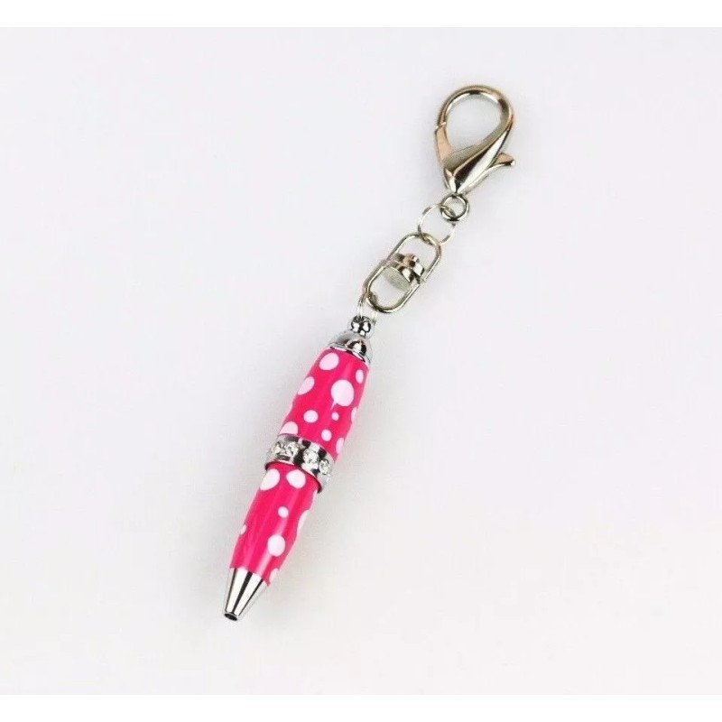Padrino Pixie Pink Polka Dot Print Crystal Keychain Carabiner Ballpoint Pen