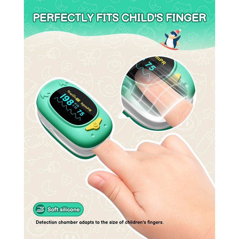 - Children Designed: HOLFENRY paediatric pulse oximetry is a multifunctional kids oximeter, able to simultaneously measure blood oxygen, heart rate and PI. Very cute design, child-specific size, suitable for small bayby's fingers. Adjust the tension of the finger saturation meter clip to ensure the child's comfort. Note: Not suitable for children under 2 years old!
