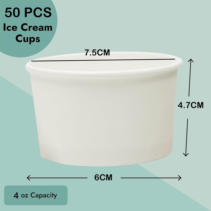 pafnisoin Paper Ice Cream Cups, Pack of 50, Dessert Glasses, 150 ml, Dessert Cups, Paper Cups, Disposable Cups, Party Cups, Drinking Cups (White)