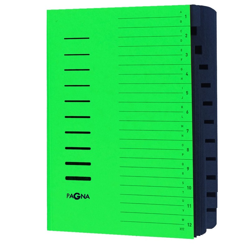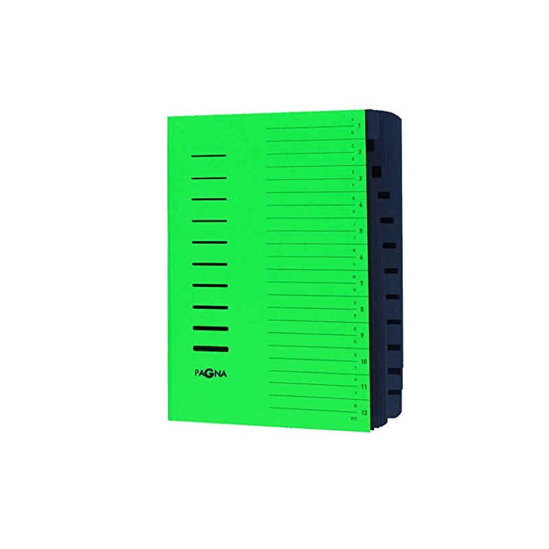 Pagna 24122-03 File 12 Sections Pressboard Elastic Straps Black Index 1-12/A-Z on Cover Green