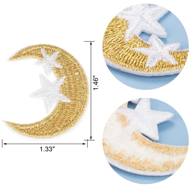 - Applique and Embroidered Patches: These moon and star embroidered patches perfect widely used to decorate or repair jean jackets, T-shirts, jeans, bags, vests, hats, backpack, clothing, curtain, pillow, scarf, quilt, etc.