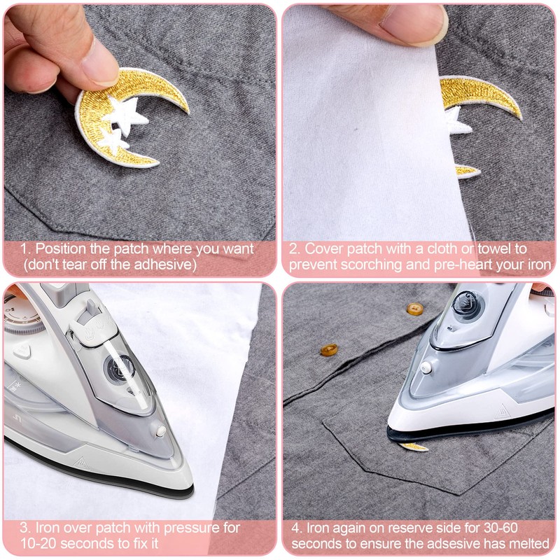 - Cover a thin cloth on patch, and then iron on, Avoid using iron directly on patch to protect the patch under high temperature.