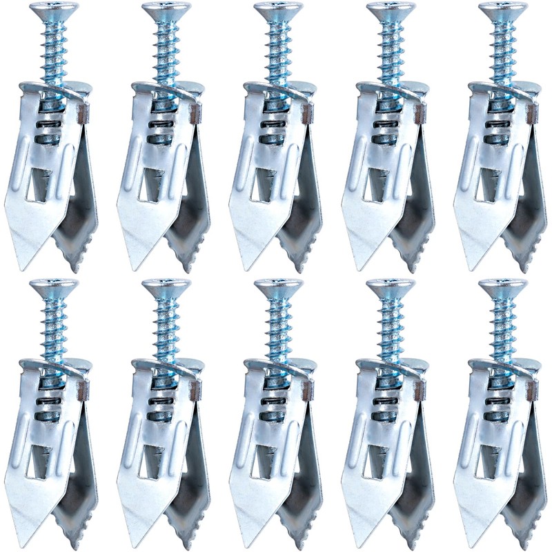 - Material: These anchors and screws are made of high-quality steel, strong and stable, not easy to be deformed or damaged. Featuring an expanding design with pronged anchors and tapered tips, the two sides expand relative to each other when the screw is tightened, the holding power is very stable, they can be used for a long time