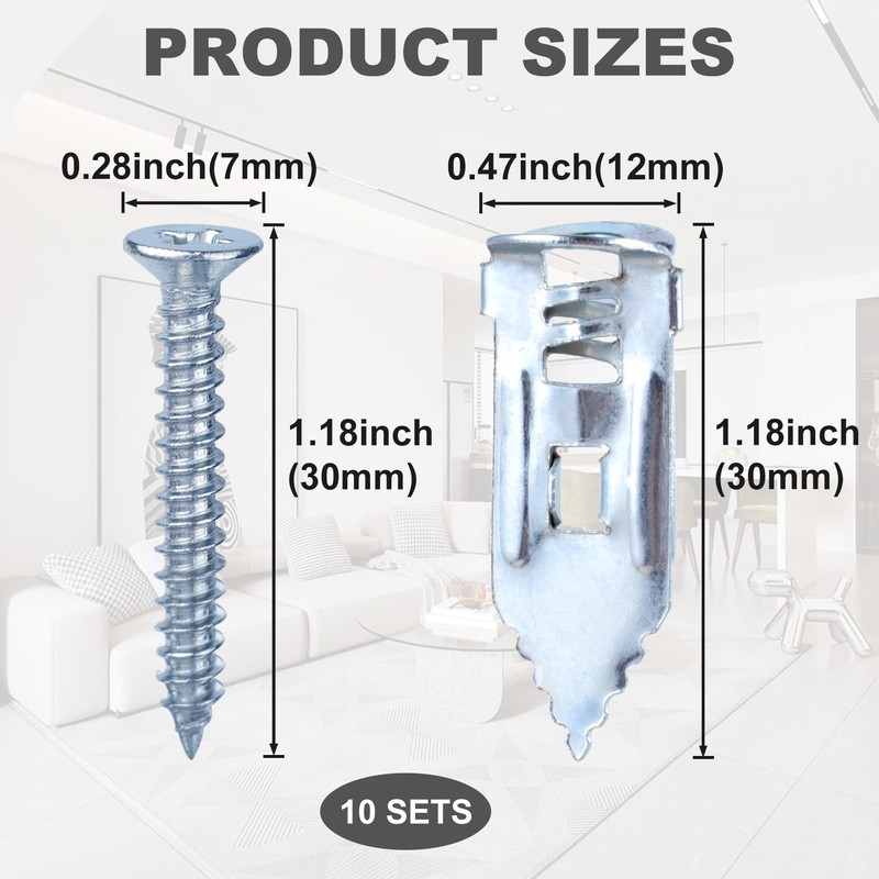 - Package Included: 10 Pcs Anchors(0.47"x1.18"/12x30mm) and 10 pcs screws(0.28x1.18inch/7x30mm)
