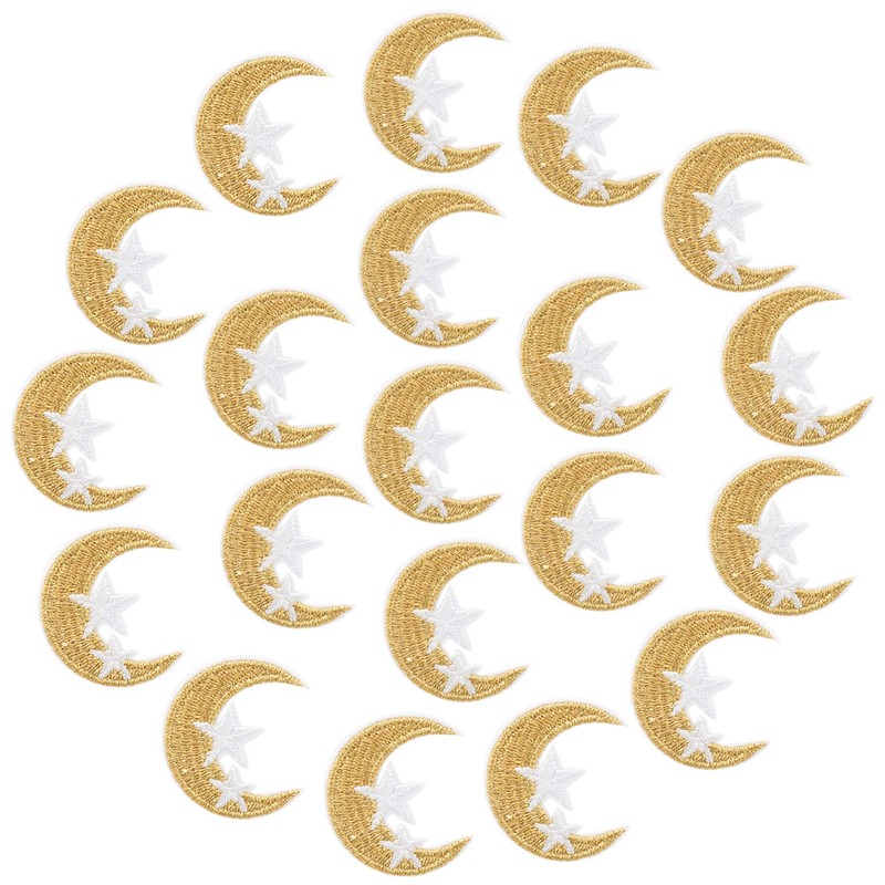 PAGOW 20PCS Moon Star Embroidered Patch, Night Sky Iron On Embroidered Appliques Machine Needlecraft DIY Patches Projects for Bags, Jackets, Jeans, Clothes, etc (3.2 x 3.7 cm, 1.33 x 1.46 inch)