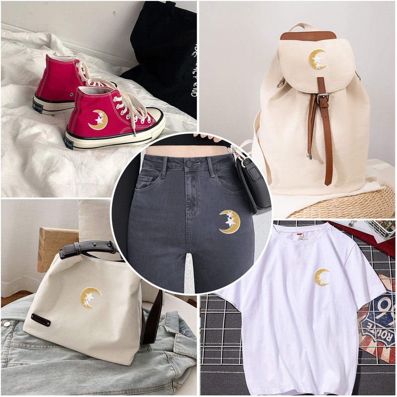 - Applique and Embroidered Patches: These moon and star embroidered patches perfect widely used to decorate or repair jean jackets, T-shirts, jeans, bags, vests, hats, backpack, clothing, curtain, pillow, scarf, quilt, etc.