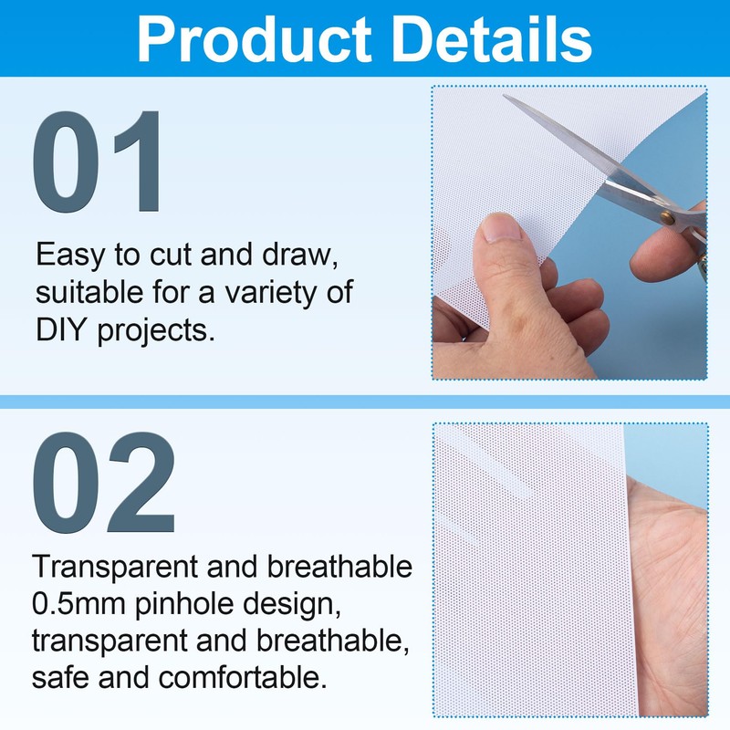 - Premium Material: These eye mesh sheets are made of PVC, soft and breathable with a clear view. It is not easy to break, scratch and wear resistant, and can last for a long time