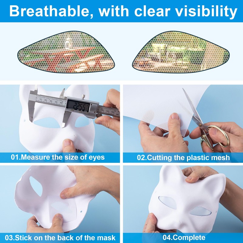 Package Included: You will get 5 sheets fursuit eye mesh, each of them is 11.8inch/300mm long, 7.87in/ 200mm wide, 0.004inch/0.1mm thick, hole: 0.02inch/0.5mm. Sufficient for daily use, you can also share it with others