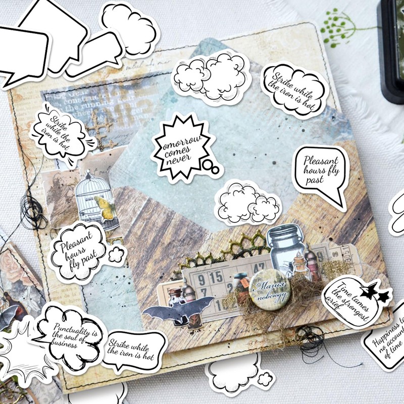 PAGOW 90 PCS Dialog Box Paper Stickers, Photo Album Sticker, Cute Bubble Sticky Labels, Shaped Comic Book Stickers for Scrapbook, Photocard, Diary, Clendar, DIY Crafts, Planners (Black, White)