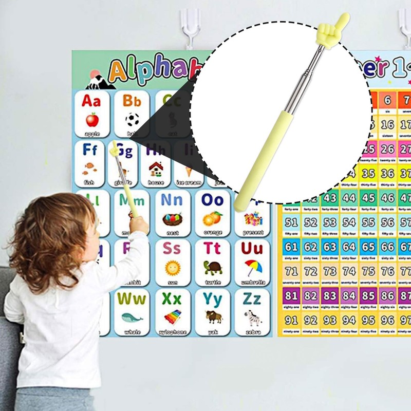 PAGOW Retractable Teacher Pointer Stick, Hand Pointer Stick, Student Finger Pointing Stick, Extendable School Supplies for Reading, Classroom (Light Yellow, Finger)