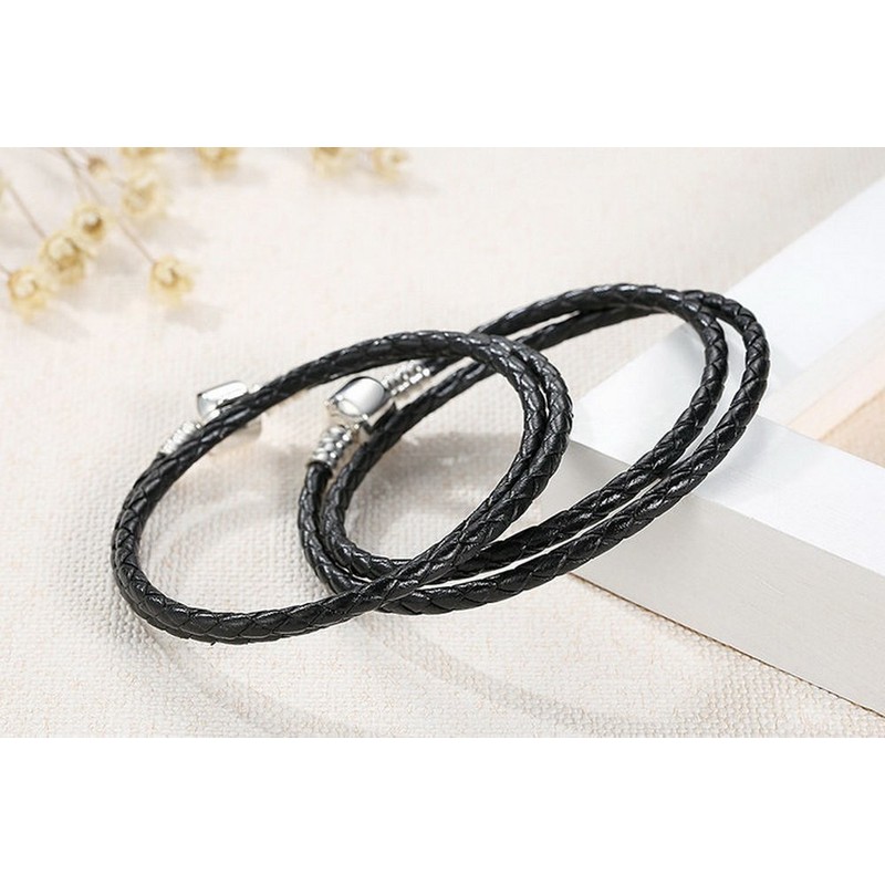 PAHALA 925 Sterling Silver Long 4 Colors Braided Leather Chain Snake Clasp (34.00, Black)