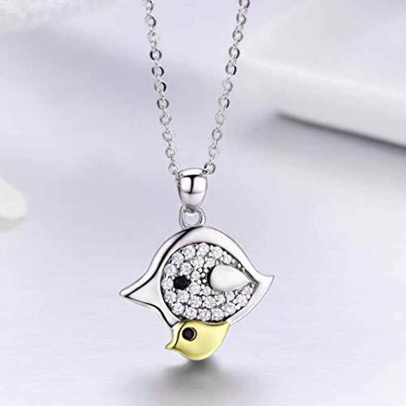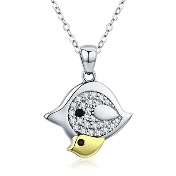 PAHALA 925 Sterling Silver Mother Bird with Fledgling Crystals Pendant Necklace