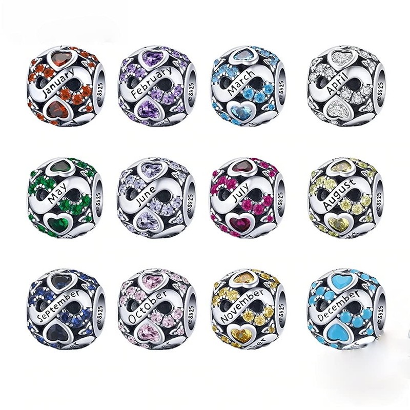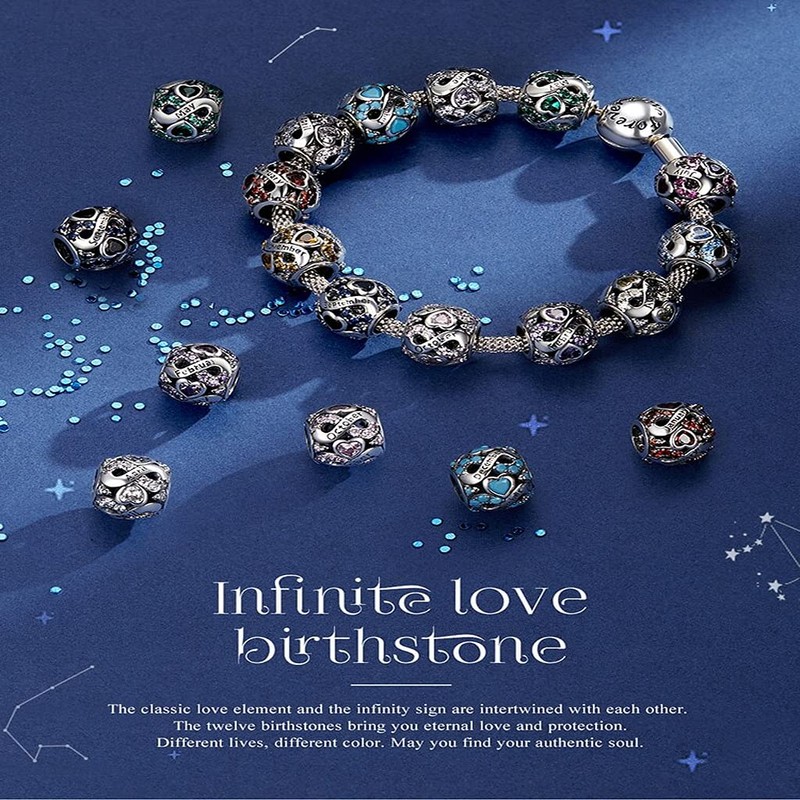 PAHALA 925 Sterling Silver Multiple Crystal Color Infinite Love Month Charm Bead (October)