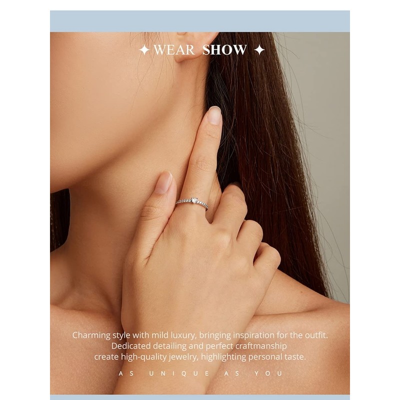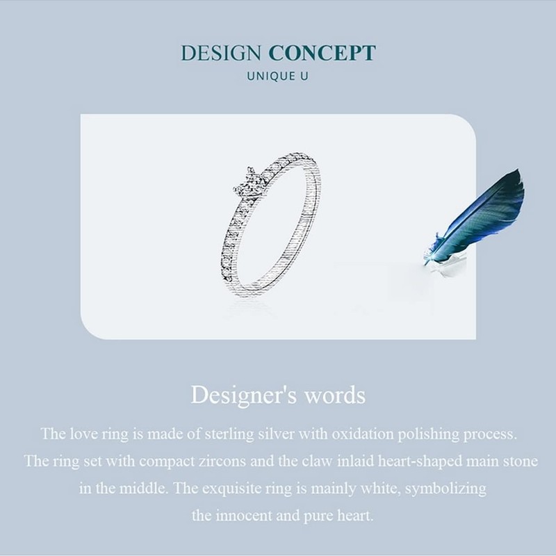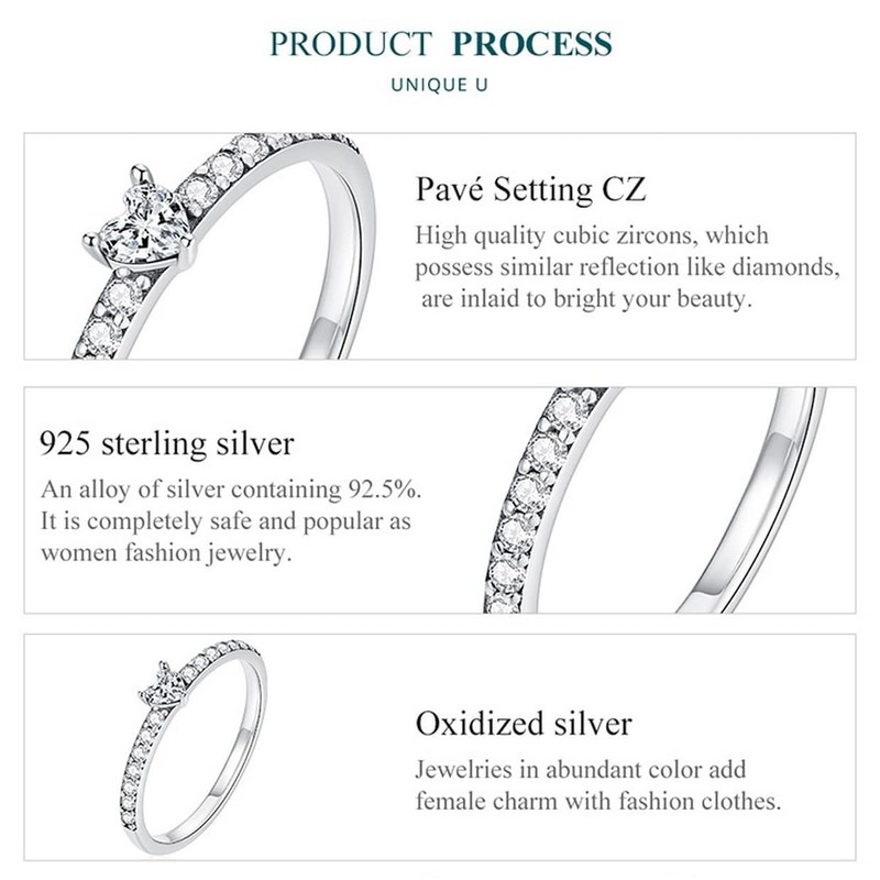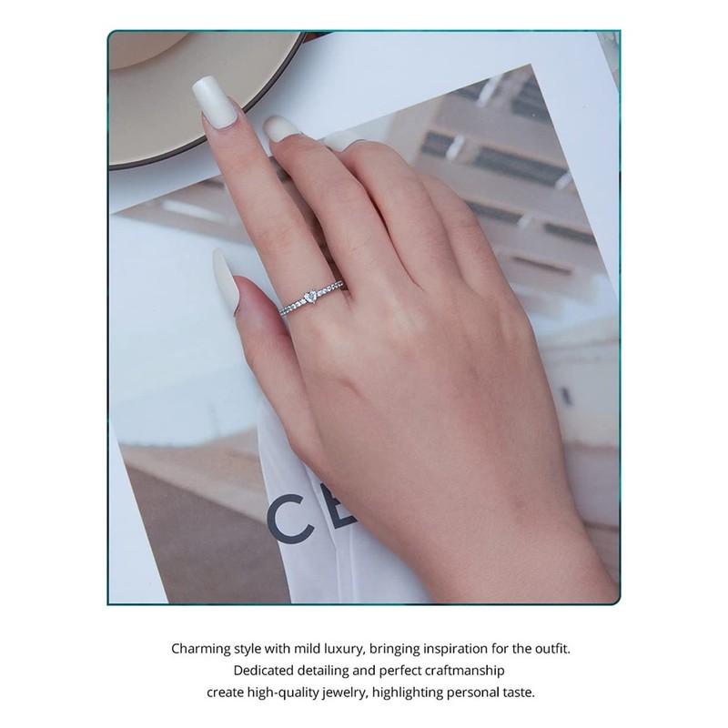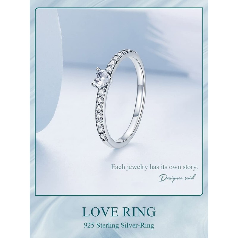 - đź’– [Description] The love ring is made of sterling silver with oxidation polishing process. The ring set with compact zircons and the claw inlaid heart-shaped main stone in the middle. The exquisite ring is mainly white, symbolizing the innocent and pure heart.