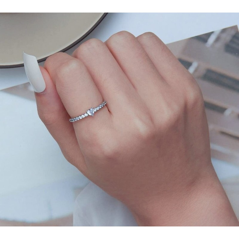 PAHALA 925 Sterling Silver Simple Pavé Setting Shiny Heart Zircon Finger Weeding Party Engagement Ring (7)