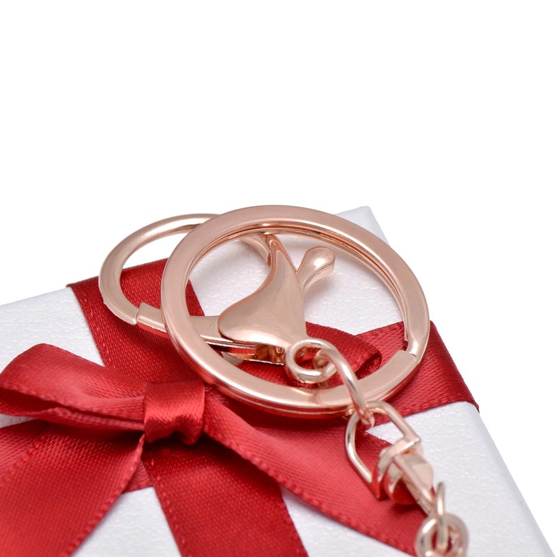 - A Christmas keychain with tree & top star, enameled with pink colors, rhinestones decorated