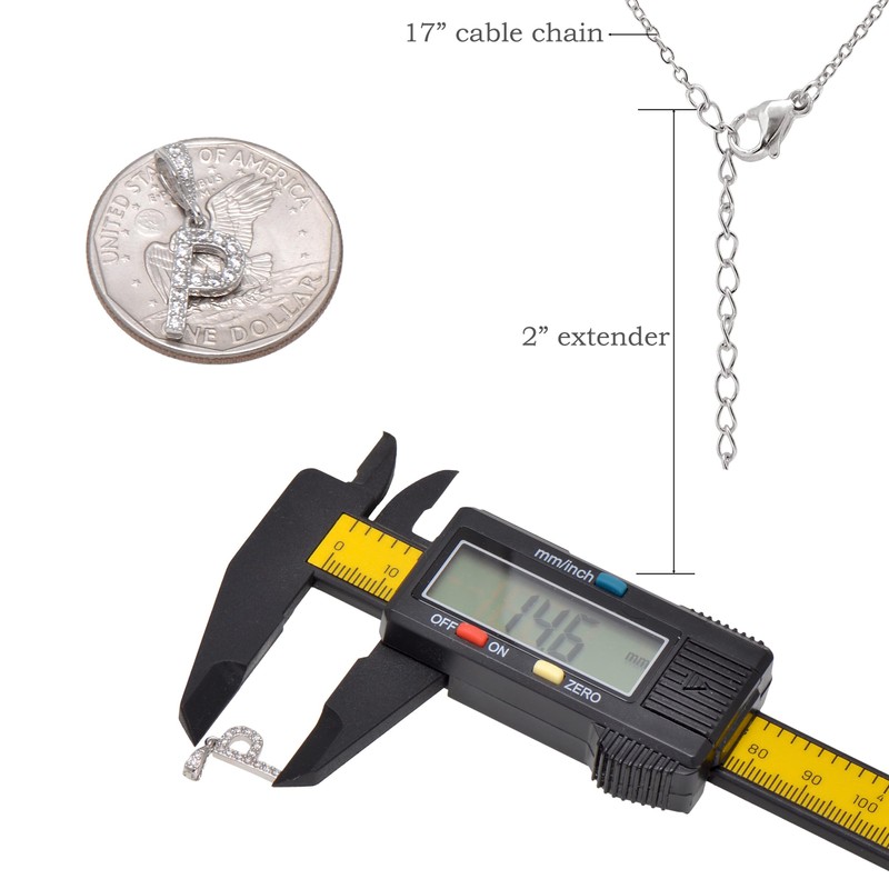 - This is a copper metal casted initial letter P pendant, 18" long (17+2 inches) stainless steel chain, sterling silver rhodium plated