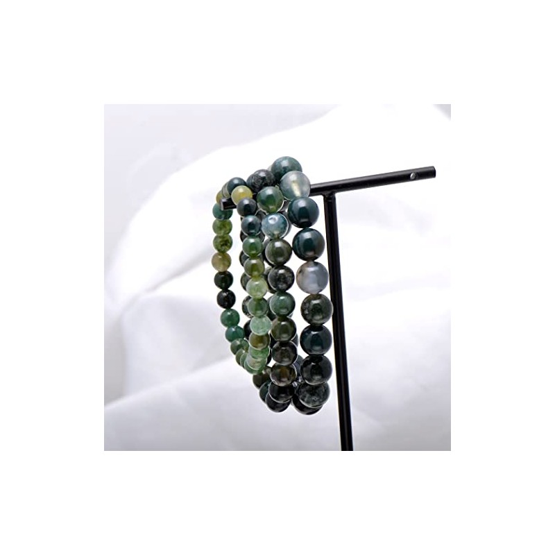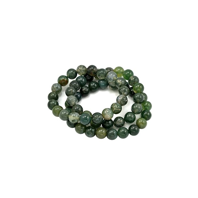 Paialco Set of 3 Moss Agate Gemstone Elastic Bead Bracelet Bead Size 10mm