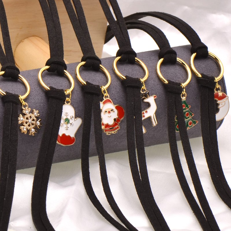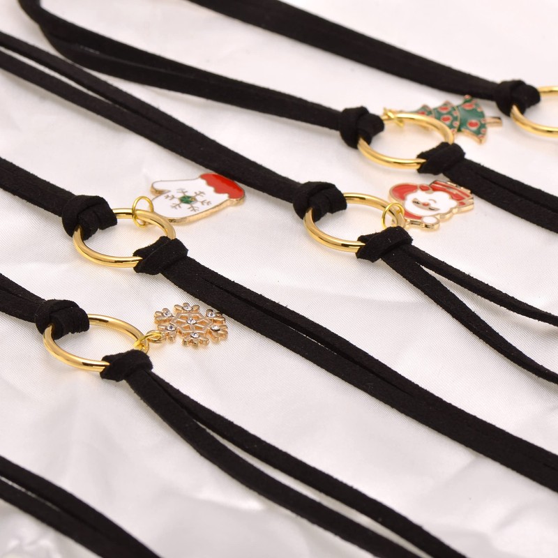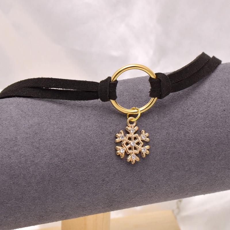 Paialco Soft Suede Leather Cord Choker Necklaces Golden Circle with Christmas Snowflake Charm
