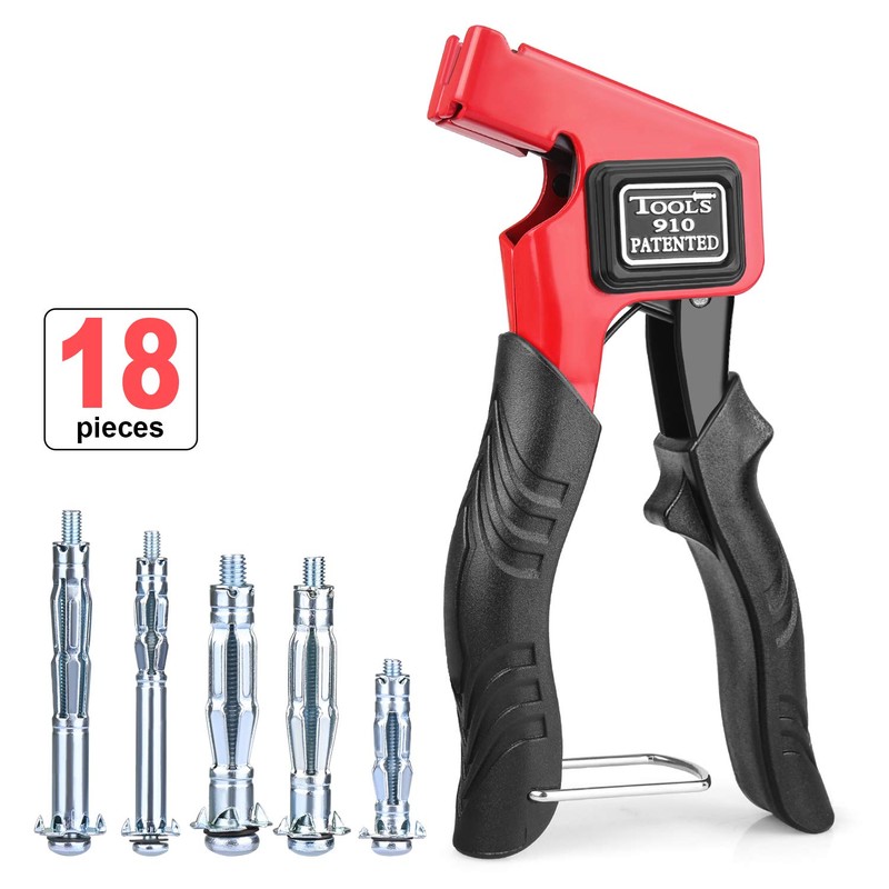 - Package included - Comes with a hollow wall anchors gun, and 5 sizes of 4 x 32mm, 4 x 60mm, 5 x 52mm, 5 x 65mm, 6 x 52mm total of 18pcs molly bolts, convenient for your use and storage.